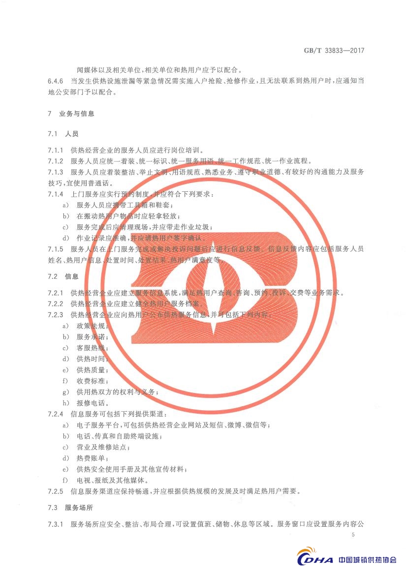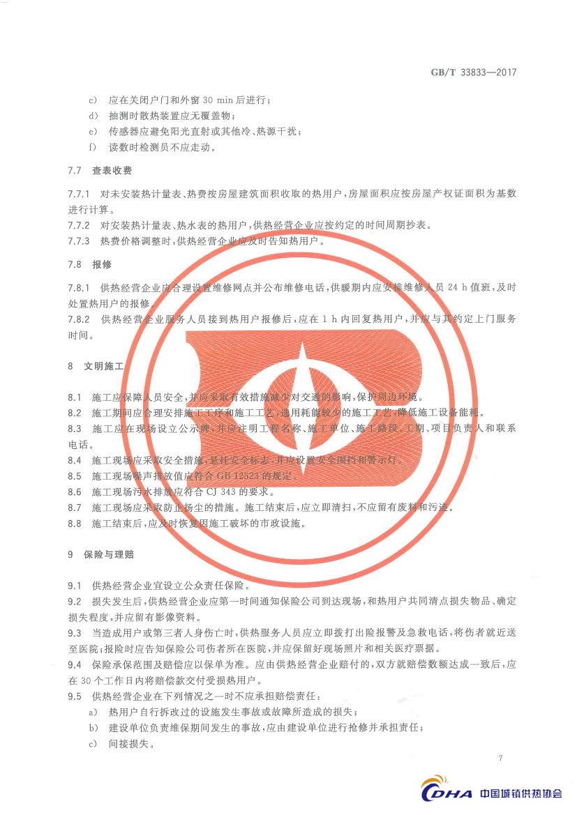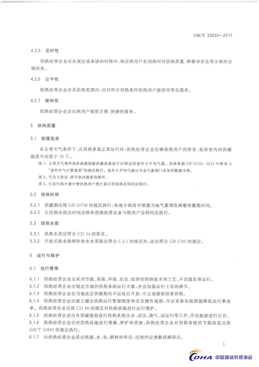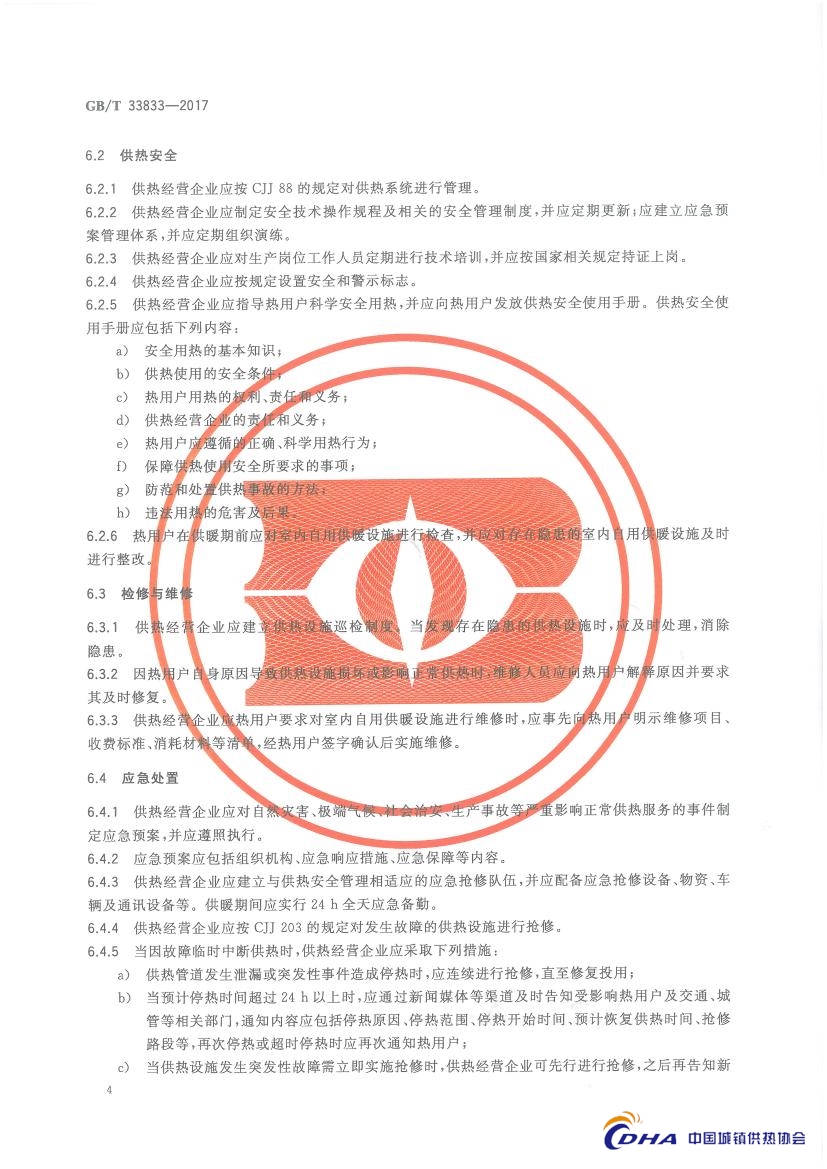 由中國城市建設研究院有限公司、中國城鎮(zhèn)供熱協(xié)會、北京市熱力集團有限責任公司為主要起草單位編寫的《GB/T 33833-2017 城鎮(zhèn)供熱服務》國家標準于2017年5月31日由中華人民共和國國家質(zhì)量監(jiān)督檢驗檢疫總局和中國國家標準化管理委員會聯(lián)合發(fā)布發(fā)布,于2018年4月1日起實施。